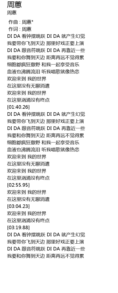 | [03:39.06] | DI DA 跟音符跳跃 DI DA 再靠近一些 |