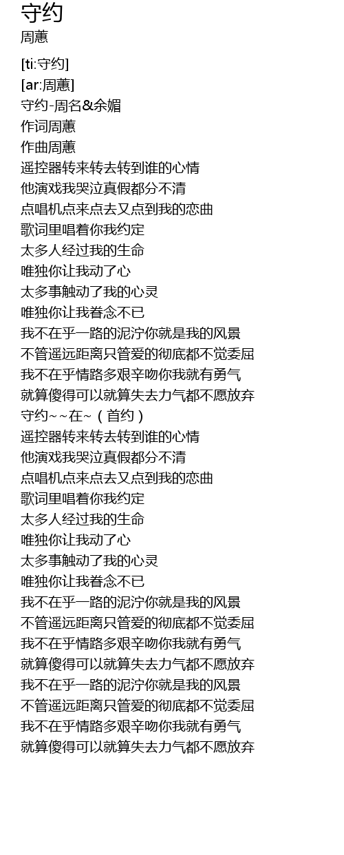 | [00:01.316] | 守约-周名&余媚 |
