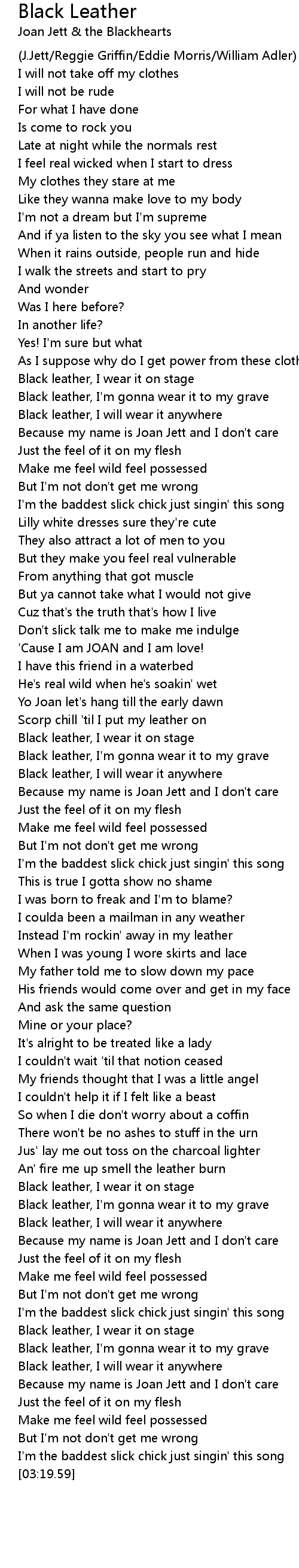 Black leather, I'm gonna wear it to my grave |