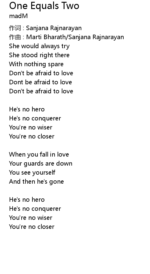 One Equals Two Lyrics