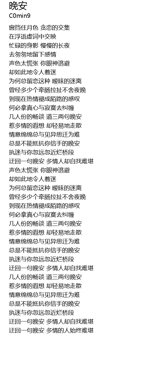 | [03:08.961] | 迂回一句晚安 多情人却自找难堪 |