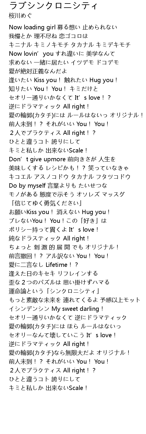 | [00:45.74] | 知りたい You! You! キミだけと |