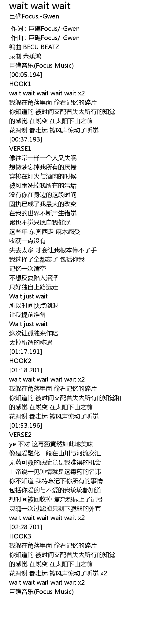 | [00:00.000] | 作词 : 巨礁Focus/-Gwen |