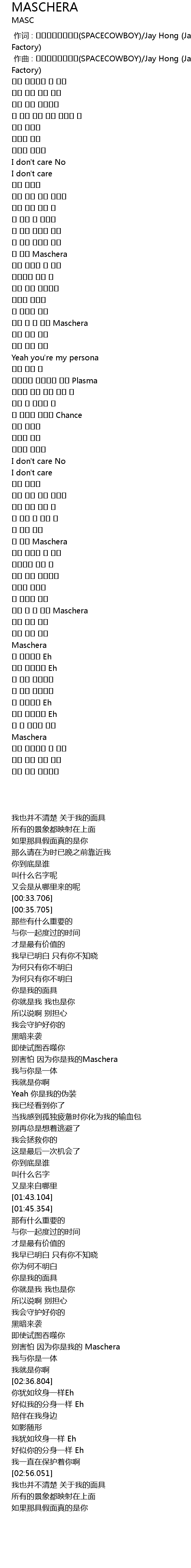 | [02:15.102] | 걱정 마 넌 나의 Maschera |