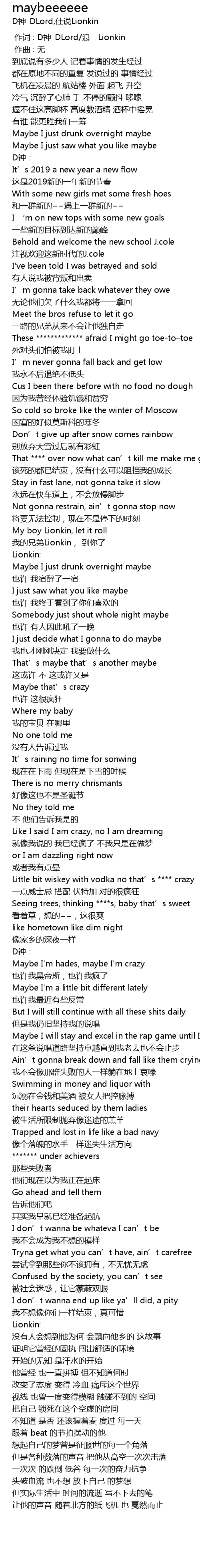 | [00:00.000] | 作词 : D神_DLord/浪一Lionkin |