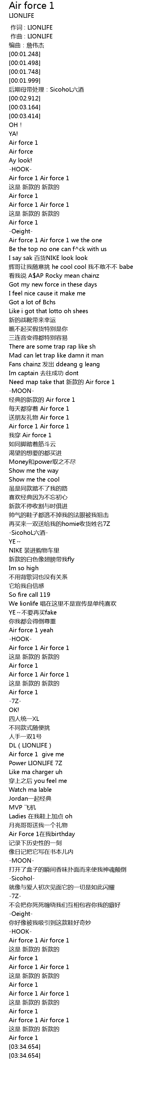 | [01:02.288] | Air force 1 Air force 1 |