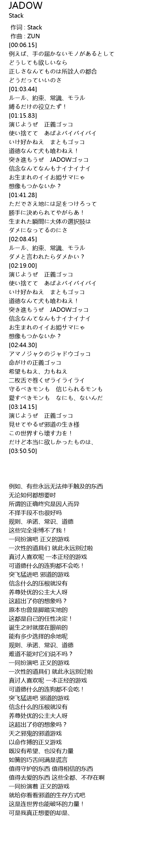 | [02:31.75] | 突き進もうぜ JADOWゴッコ |
