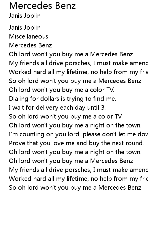 Oh lord won't you buy me a Mercedes Benz. |