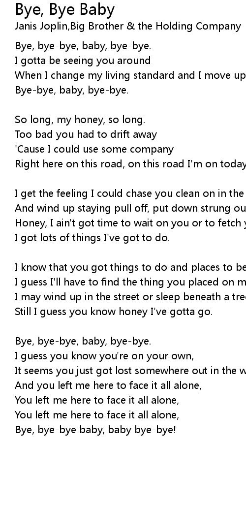 Bye-bye, baby, bye-bye. |