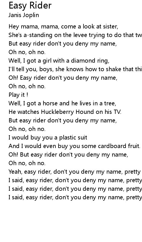 I said, easy rider, don't you deny my name, pretty baby ... |