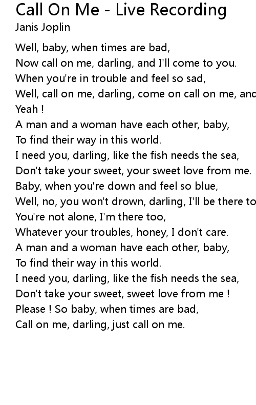 Well, call on me, darling, come on call on me, and I'll help you. |