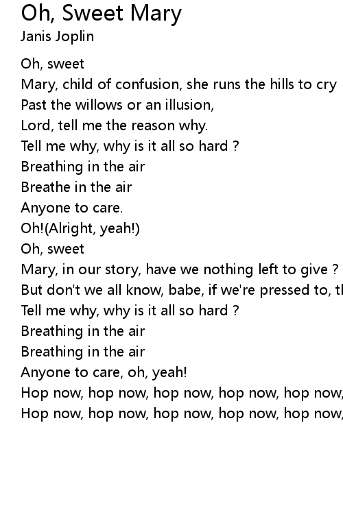 Mary, child of confusion, she runs the hills to cry |