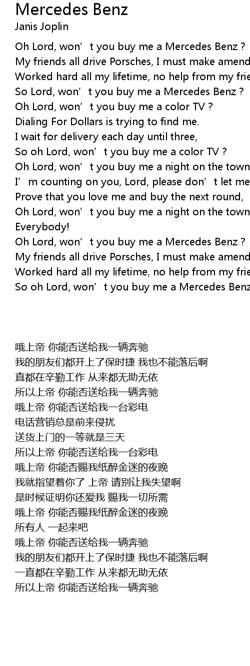 | [01:34.91] | So oh Lord, won’t you buy me a Mercedes Benz ? |