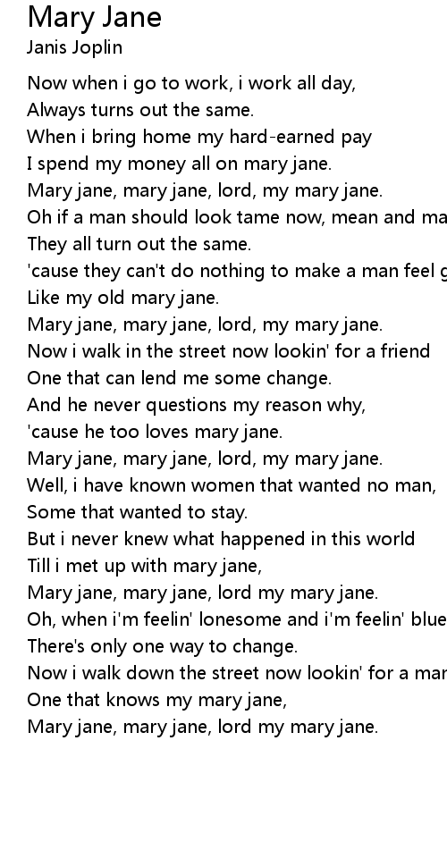Mary jane, mary jane, lord, my mary jane. |