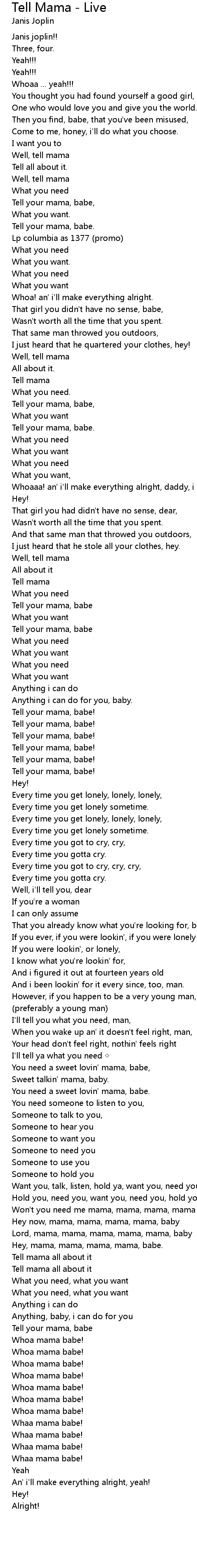 | Lord, mama, mama, mama, mama, mama, baby | |