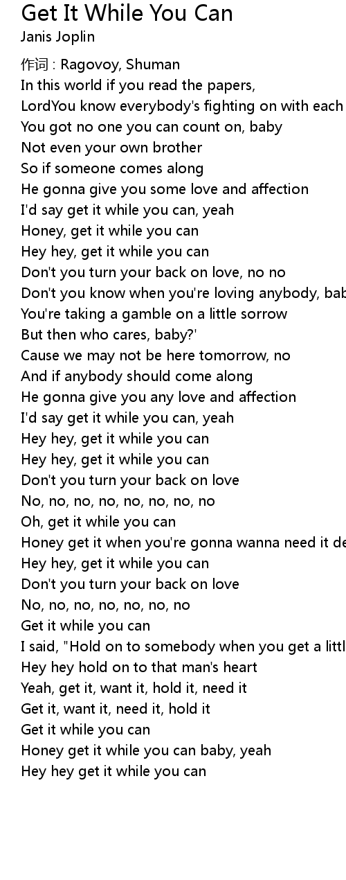 | Honey get it when you're gonna wanna need it dear, yeah yeah | |