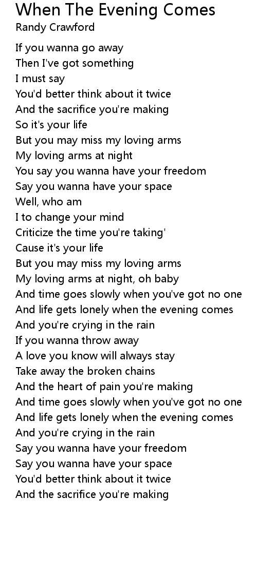 And life gets lonely when the evening comes |