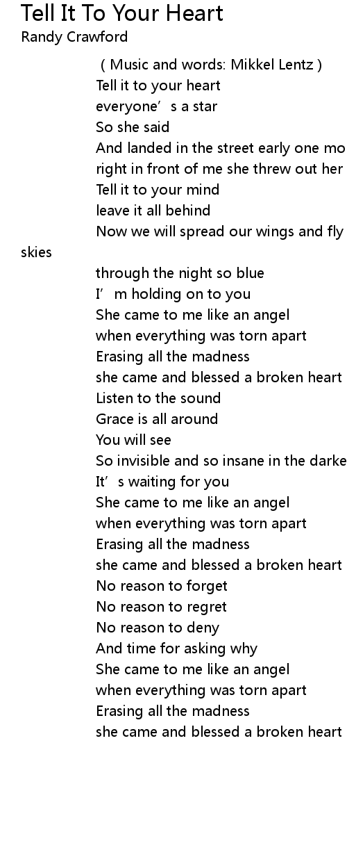 | [00:16.51] | Tell it to your heart |