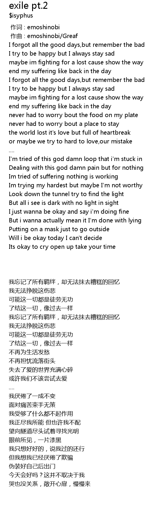 | Song | exile pt.2 |