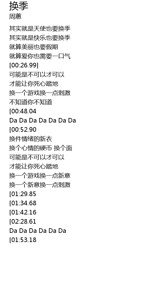 | [01:07.84][00:48.04] | Da Da Da Da Da Da Da |