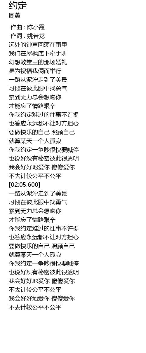 | [02:51.087] | 你我约定难过的往事不许提 |