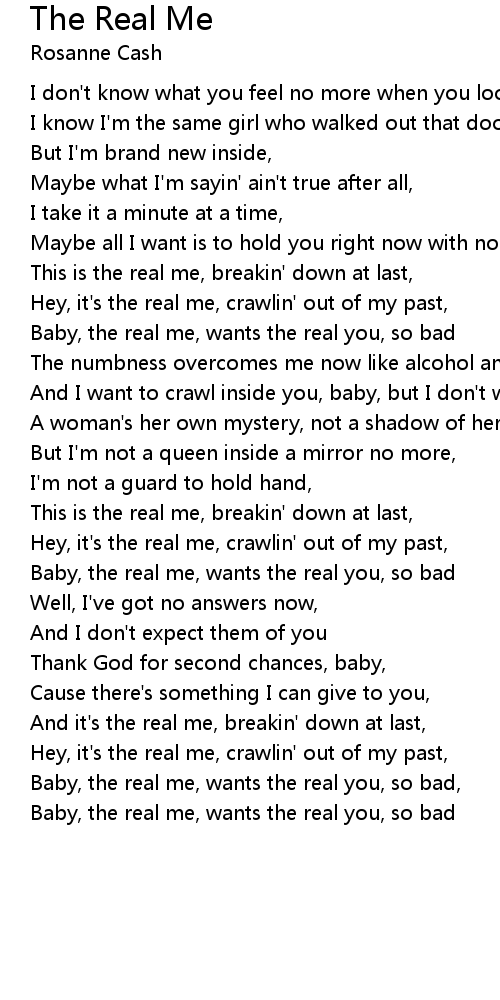 And it's the real me, breakin' down at last, |