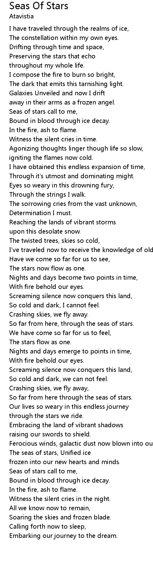 Seas of stars call to me, |