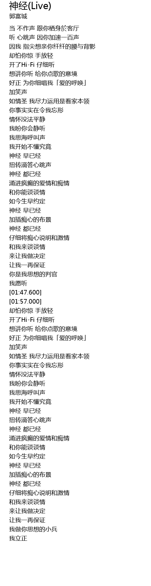 | [01:27.300] | shén jīng dōu yǐ jīng |