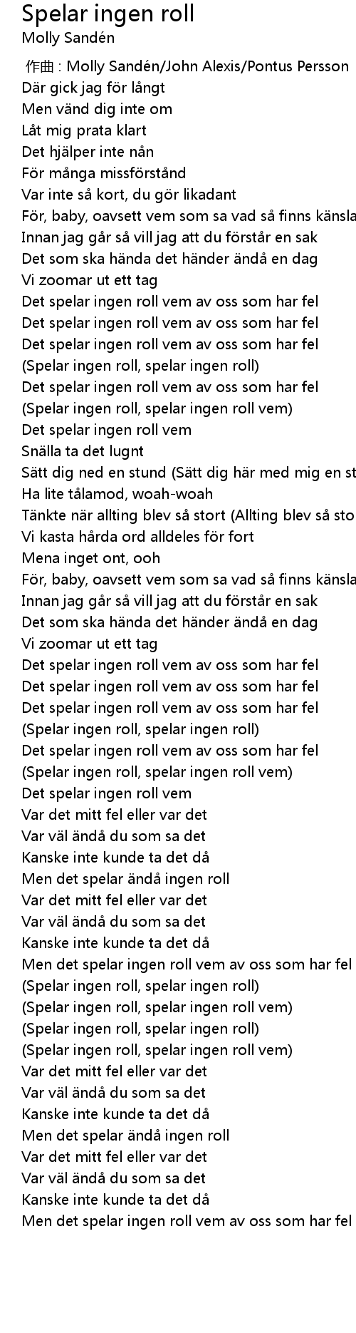 | [02:29.98] | (Spelar ingen roll, spelar ingen roll) |