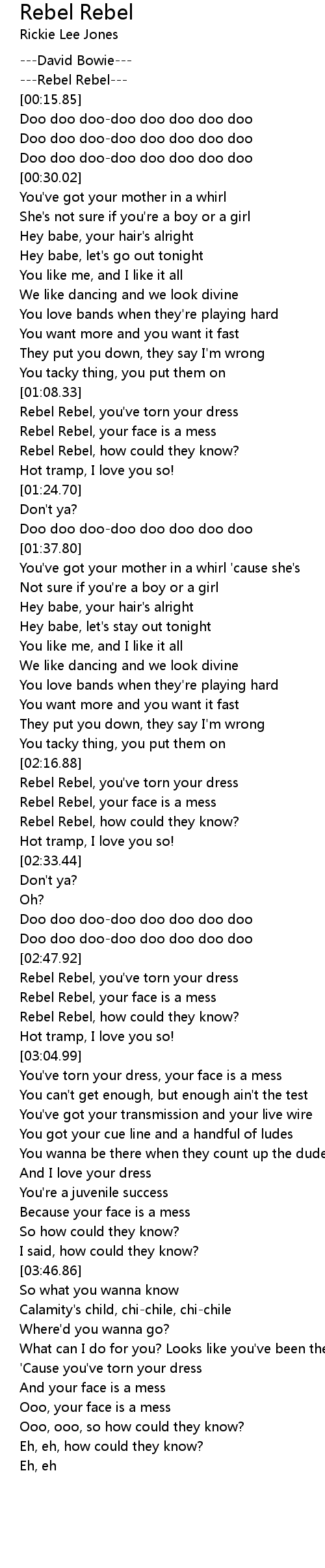 Rebel Rebel, you've torn your dress |