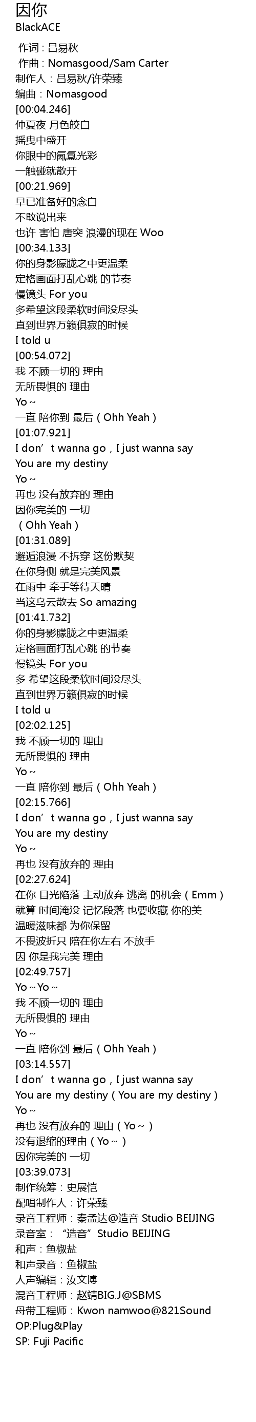 | [03:17.324] | You are my destiny(You are my destiny) |