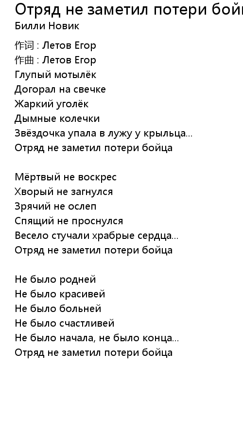 | Song | Отряд не заметил потери бойца |