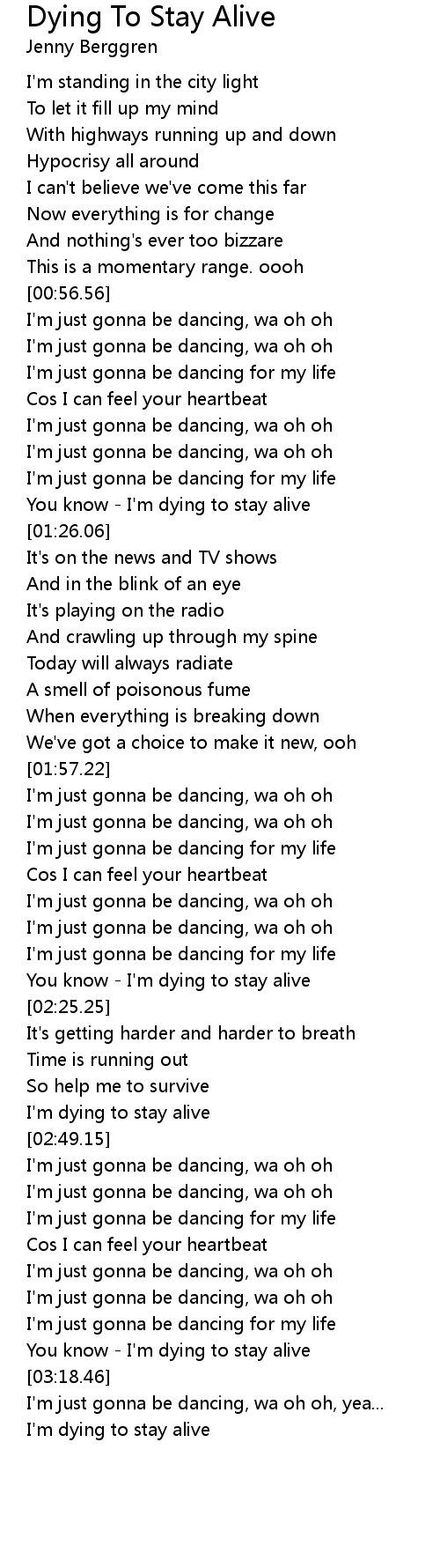 You know - I'm dying to stay alive |