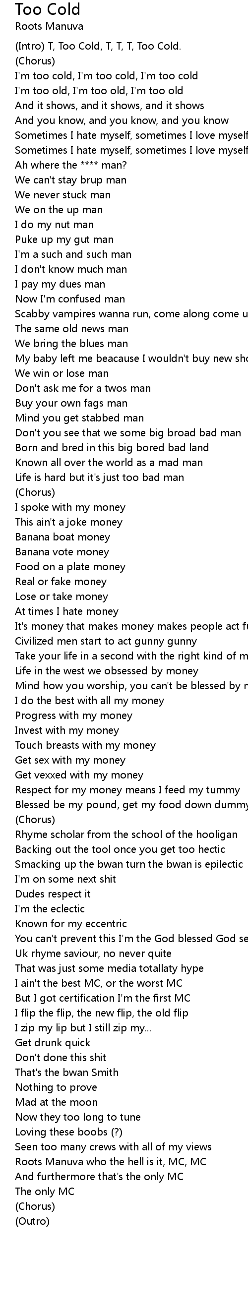(Intro) T, Too Cold, T, T, T, Too Cold. |