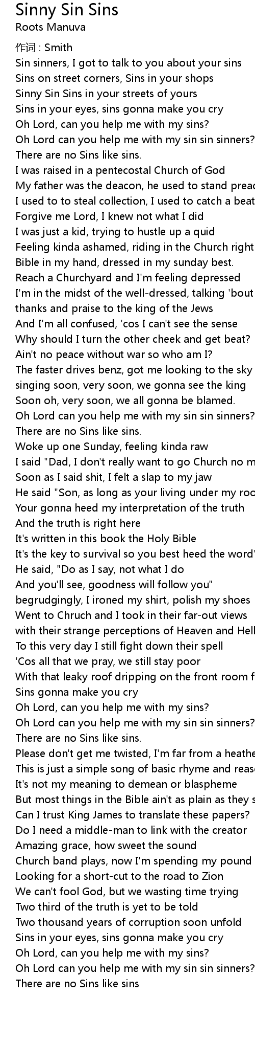 | Sin sinners, I got to talk to you about your sins | |