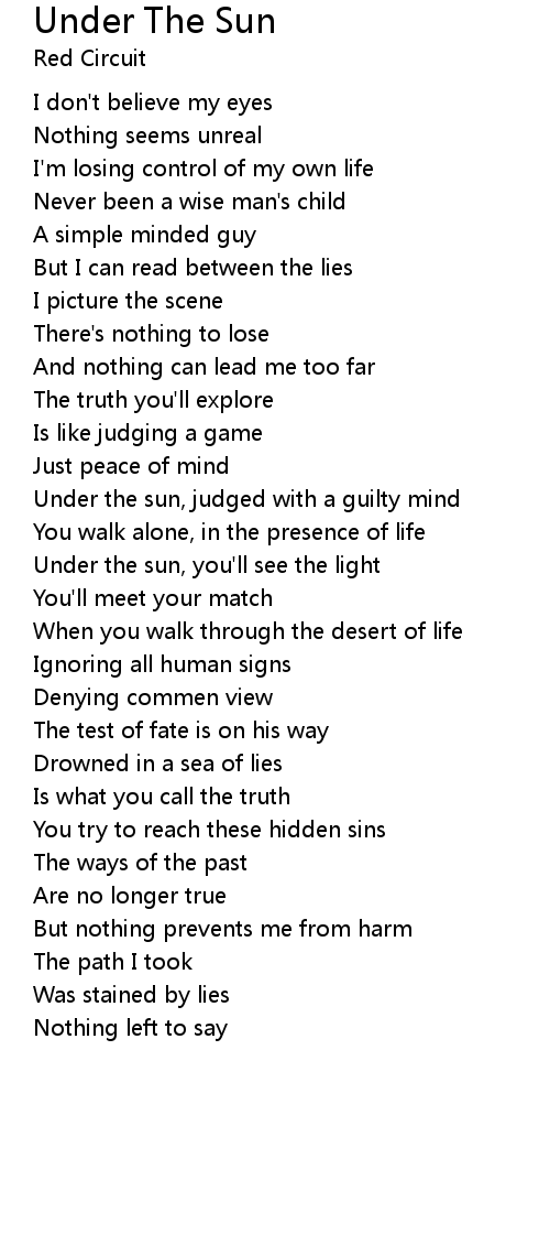 Under the sun, you'll see the light |
