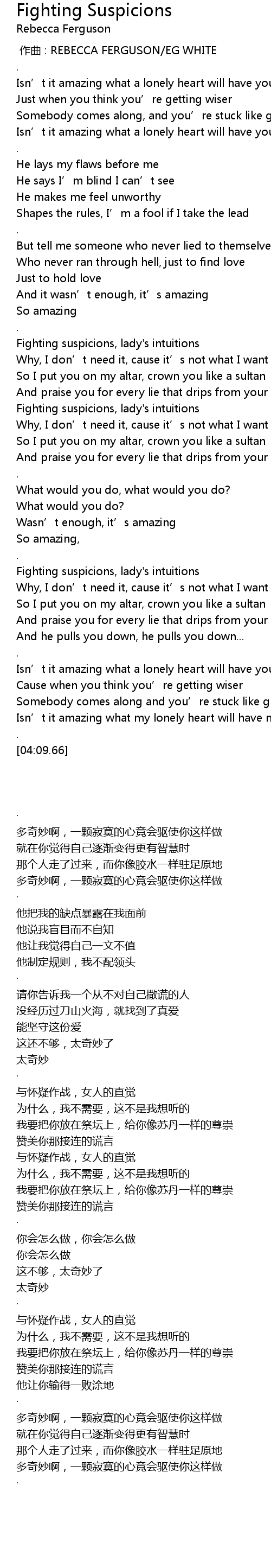 | [02:56.80] | Fighting suspicions, lady's intuitions |