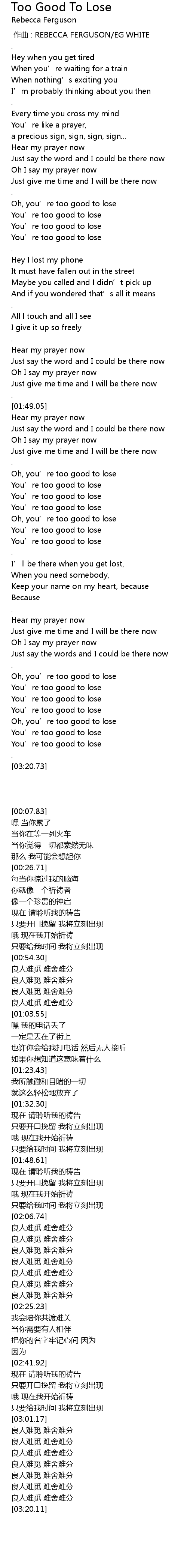 | [00:00.00] | 作曲 : REBECCA FERGUSON/EG WHITE |
