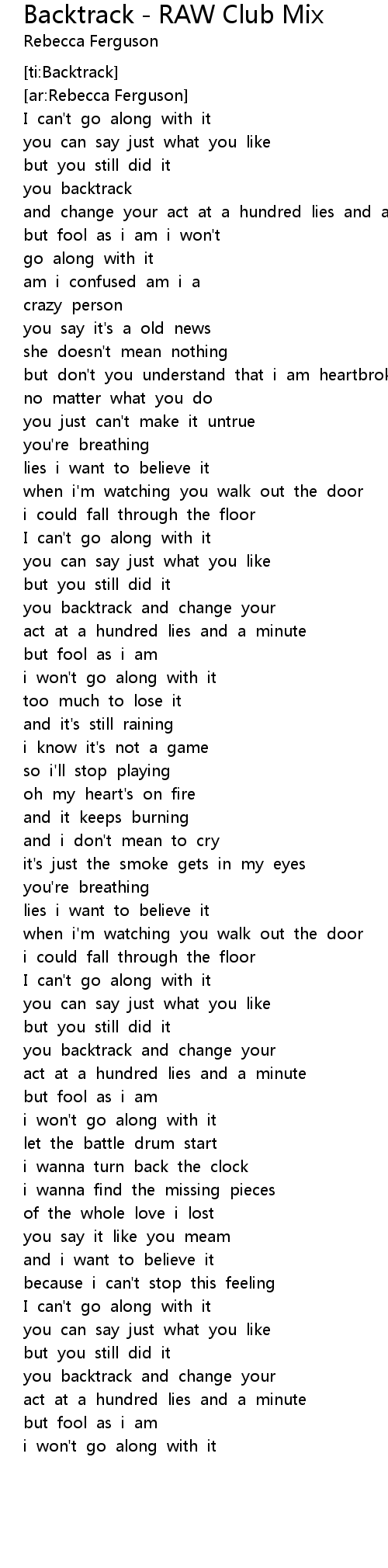 Backtrack - RAW Club Mix Lyrics
