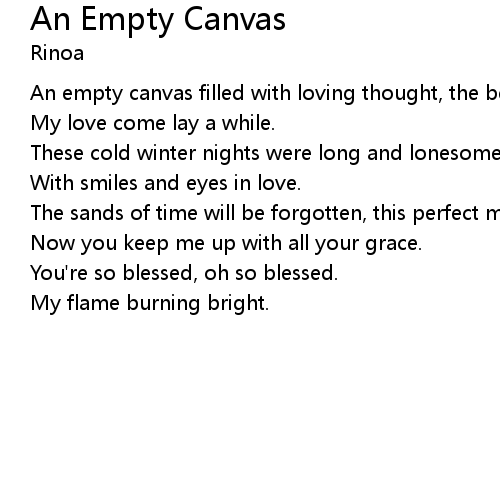 | An empty canvas filled with loving thought, the best I've ever had. | |