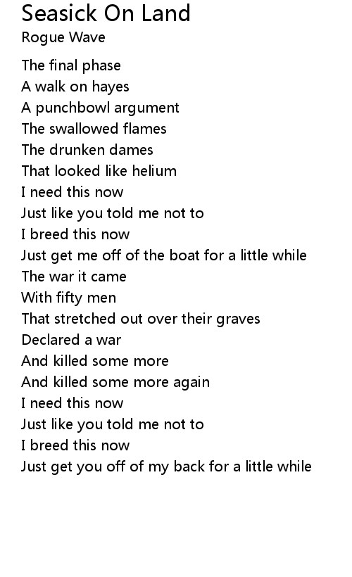 | Song | Seasick On Land |