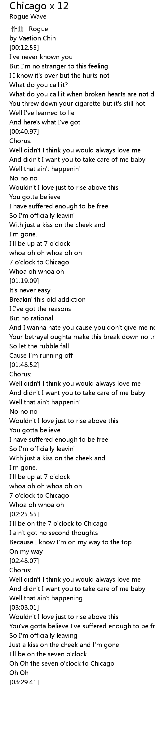 | [03:18.74] | Oh Oh the seven o' clock to Chicago |