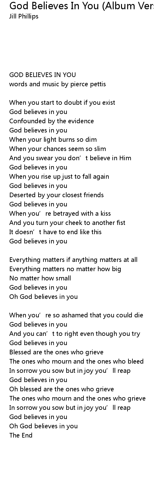| [00:39.65] | God believes in you |