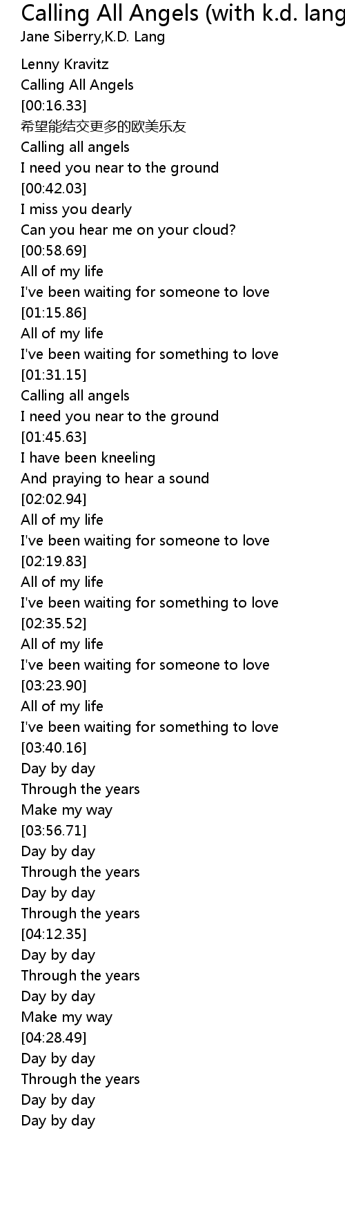 | [00:32.01] | Calling all angels |