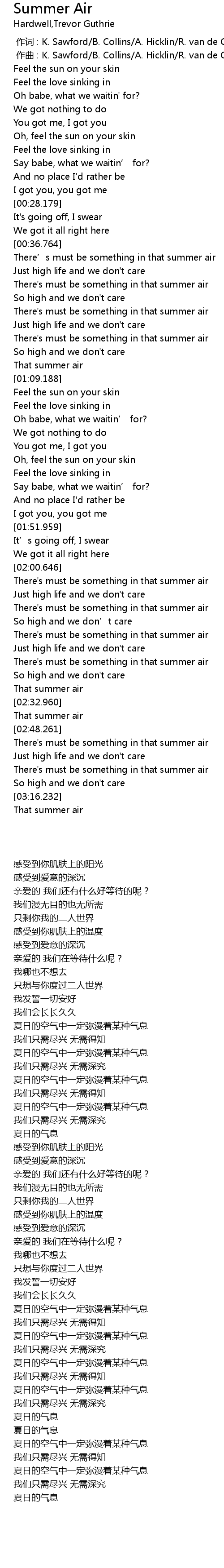 | [00:00.000] | 作词 : K. Sawford/B. Collins/A. Hicklin/R. van de Corput |
