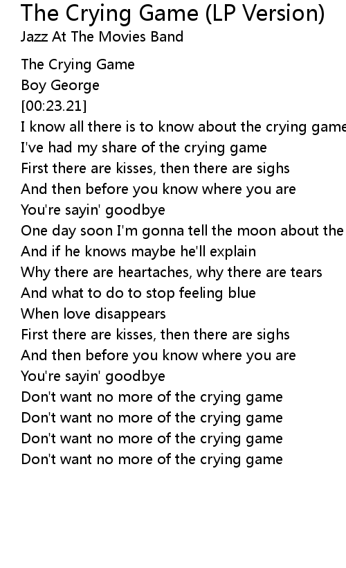I know all there is to know about the crying game |