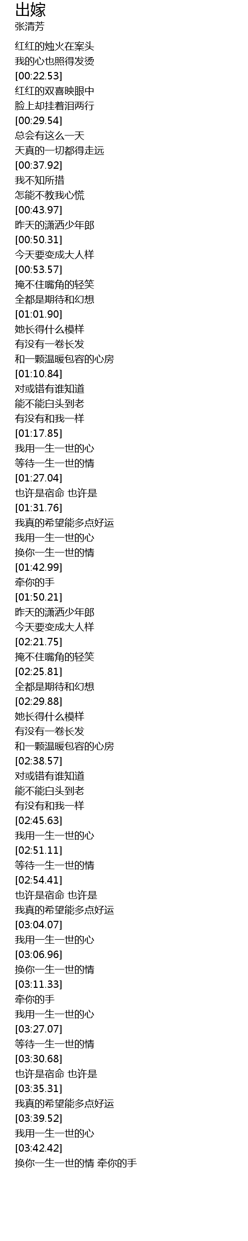 | [03:18.44] | 我用一生一世的心 |