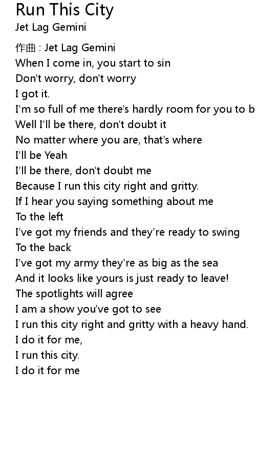 | Because I run this city right and gritty. | |