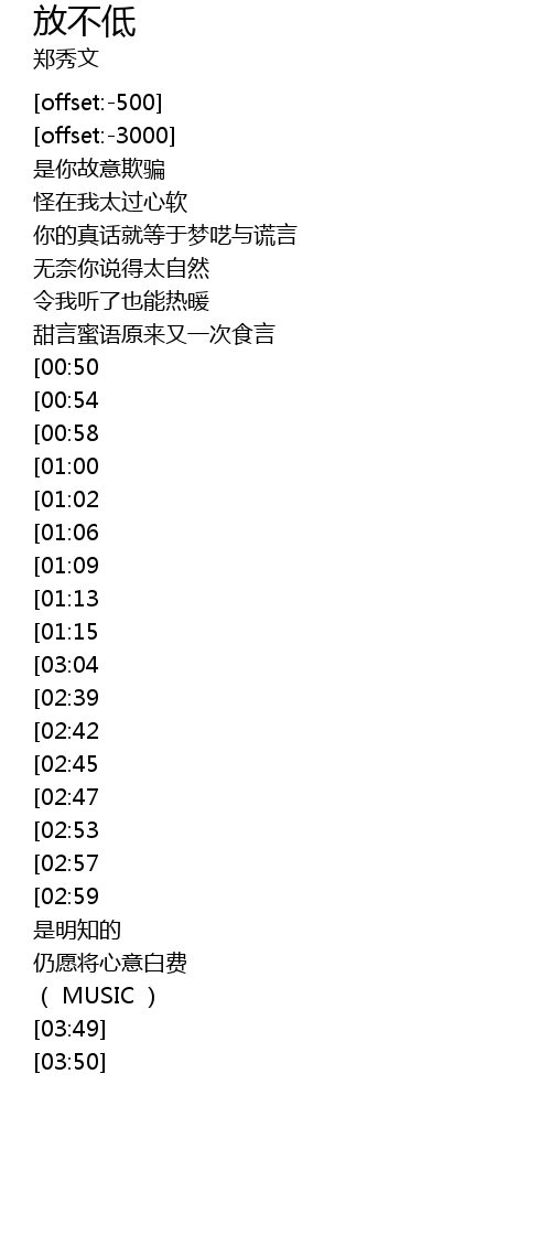 | [00:43] | 甜言蜜语原来又一次食言 |