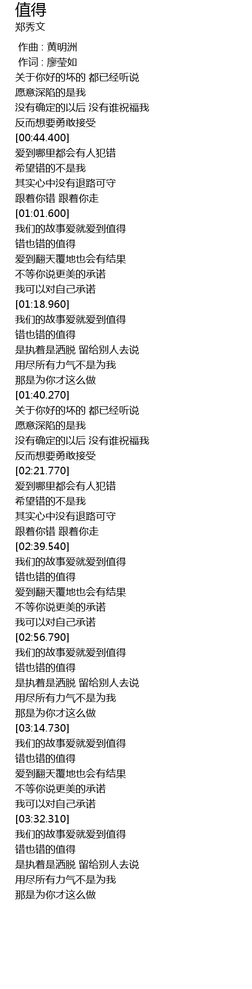 | [02:39.940] | 我们的故事爱就爱到值得 |